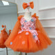 This girls' dress features a dreamy design and delicate details. The overall soft pink color tone is adorned with sparkling stripes and a fluffy feathered hemline, creating a fairy-like feel. The back is finished with a large bow in the same color, adding an air of elegance and cuteness. This gown is offered in a variety of color options to meet different style needs.