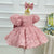 This girls' dress features a dreamy design and delicate details. The overall soft pink color tone is adorned with sparkling stripes and a fluffy feathered hemline, creating a fairy-like feel. The back is finished with a large bow in the same color, adding an air of elegance and cuteness. This gown is offered in a variety of color options to meet different style needs.