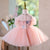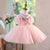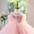 This girls' dress features a dreamy design and delicate details. The overall soft pink color tone is adorned with sparkling stripes and a fluffy feathered hemline, creating a fairy-like feel. The back is finished with a large bow in the same color, adding an air of elegance and cuteness. This gown is offered in a variety of color options to meet different style needs.