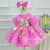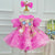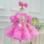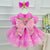 This girls' dress features a dreamy design and delicate details. The overall soft pink color tone is adorned with sparkling stripes and a fluffy feathered hemline, creating a fairy-like feel. The back is finished with a large bow in the same color, adding an air of elegance and cuteness. This gown is offered in a variety of color options to meet different style needs.