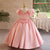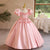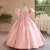 This girls' dress features a dreamy design and delicate details. The overall soft pink color tone is adorned with sparkling stripes and a fluffy feathered hemline, creating a fairy-like feel. The back is finished with a large bow in the same color, adding an air of elegance and cuteness. This gown is offered in a variety of color options to meet different style needs.
