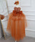 This girls' dress features a dreamy design and delicate details. The overall soft pink color tone is adorned with sparkling stripes and a fluffy feathered hemline, creating a fairy-like feel. The back is finished with a large bow in the same color, adding an air of elegance and cuteness. This gown is offered in a variety of color options to meet different style needs.