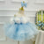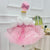 This girls' dress features a dreamy design and delicate details. The overall soft pink color tone is adorned with sparkling stripes and a fluffy feathered hemline, creating a fairy-like feel. The back is finished with a large bow in the same color, adding an air of elegance and cuteness. This gown is offered in a variety of color options to meet different style needs.