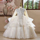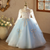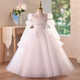 This girls' dress features a dreamy design and delicate details. The overall soft pink color tone is adorned with sparkling stripes and a fluffy feathered hemline, creating a fairy-like feel. The back is finished with a large bow in the same color, adding an air of elegance and cuteness. This gown is offered in a variety of color options to meet different style needs.