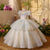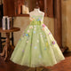 This girls' dress features a dreamy design and delicate details. The overall soft pink color tone is adorned with sparkling stripes and a fluffy feathered hemline, creating a fairy-like feel. The back is finished with a large bow in the same color, adding an air of elegance and cuteness. This gown is offered in a variety of color options to meet different style needs.
