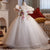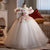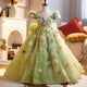 This girls' dress features a dreamy design and delicate details. The overall soft pink color tone is adorned with sparkling stripes and a fluffy feathered hemline, creating a fairy-like feel. The back is finished with a large bow in the same color, adding an air of elegance and cuteness. This gown is offered in a variety of color options to meet different style needs.