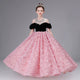 This girls' dress features a dreamy design and delicate details. The overall soft pink color tone is adorned with sparkling stripes and a fluffy feathered hemline, creating a fairy-like feel. The back is finished with a large bow in the same color, adding an air of elegance and cuteness. This gown is offered in a variety of color options to meet different style needs.