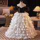 This girls' gown is made from luxurious tiers of tulle, each layer embellished with subtle sparkles that look like stars. The upper body is decorated with exquisite hand-embroidered floral patterns and diamonds, showing nobility and elegance. The soft puff sleeve design adds a sense of three-dimensionality and fantasy, and the overall shape is like a princess walking out of a fairy tale.