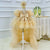 This girls' dress features a dreamy design and delicate details. The overall soft pink color tone is adorned with sparkling stripes and a fluffy feathered hemline, creating a fairy-like feel. The back is finished with a large bow in the same color, adding an air of elegance and cuteness. This gown is offered in a variety of color options to meet different style needs.