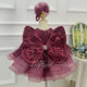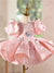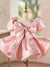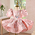 This girls' dress features a dreamy design and delicate details. The overall soft pink color tone is adorned with sparkling stripes and a fluffy feathered hemline, creating a fairy-like feel. The back is finished with a large bow in the same color, adding an air of elegance and cuteness. This gown is offered in a variety of color options to meet different style needs.