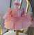 This girls' dress features a dreamy design and delicate details. The overall soft pink color tone is adorned with sparkling stripes and a fluffy feathered hemline, creating a fairy-like feel. The back is finished with a large bow in the same color, adding an air of elegance and cuteness. This gown is offered in a variety of color options to meet different style needs.