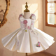 This girls' dress features a dreamy design and delicate details. The overall soft pink color tone is adorned with sparkling stripes and a fluffy feathered hemline, creating a fairy-like feel. The back is finished with a large bow in the same color, adding an air of elegance and cuteness. This gown is offered in a variety of color options to meet different style needs.