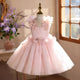 This girls' dress features a dreamy design and delicate details. The overall soft pink color tone is adorned with sparkling stripes and a fluffy feathered hemline, creating a fairy-like feel. The back is finished with a large bow in the same color, adding an air of elegance and cuteness. This gown is offered in a variety of color options to meet different style needs.
