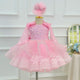 This girls' dress features a dreamy design and delicate details. The overall soft pink color tone is adorned with sparkling stripes and a fluffy feathered hemline, creating a fairy-like feel. The back is finished with a large bow in the same color, adding an air of elegance and cuteness. This gown is offered in a variety of color options to meet different style needs.