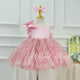 This girls' dress features a dreamy design and delicate details. The overall soft pink color tone is adorned with sparkling stripes and a fluffy feathered hemline, creating a fairy-like feel. The back is finished with a large bow in the same color, adding an air of elegance and cuteness. This gown is offered in a variety of color options to meet different style needs.