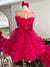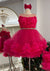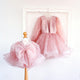 This girls' dress features a dreamy design and delicate details. The overall soft pink color tone is adorned with sparkling stripes and a fluffy feathered hemline, creating a fairy-like feel. The back is finished with a large bow in the same color, adding an air of elegance and cuteness. This gown is offered in a variety of color options to meet different style needs.
