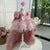 This girls' dress features a dreamy design and delicate details. The overall soft pink color tone is adorned with sparkling stripes and a fluffy feathered hemline, creating a fairy-like feel. The back is finished with a large bow in the same color, adding an air of elegance and cuteness. This gown is offered in a variety of color options to meet different style needs.