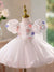 This girls' dress features a dreamy design and delicate details. The overall soft pink color tone is adorned with sparkling stripes and a fluffy feathered hemline, creating a fairy-like feel. The back is finished with a large bow in the same color, adding an air of elegance and cuteness. This gown is offered in a variety of color options to meet different style needs.