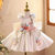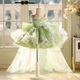 This girls' dress features a dreamy design and delicate details. The overall soft pink color tone is adorned with sparkling stripes and a fluffy feathered hemline, creating a fairy-like feel. The back is finished with a large bow in the same color, adding an air of elegance and cuteness. This gown is offered in a variety of color options to meet different style needs.