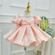 This girls' dress features a dreamy design and delicate details. The overall soft pink color tone is adorned with sparkling stripes and a fluffy feathered hemline, creating a fairy-like feel. The back is finished with a large bow in the same color, adding an air of elegance and cuteness. This gown is offered in a variety of color options to meet different style needs.