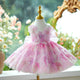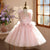This girls' dress features a dreamy design and delicate details. The overall soft pink color tone is adorned with sparkling stripes and a fluffy feathered hemline, creating a fairy-like feel. The back is finished with a large bow in the same color, adding an air of elegance and cuteness. This gown is offered in a variety of color options to meet different style needs.