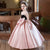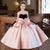 This girls' dress features a dreamy design and delicate details. The overall soft pink color tone is adorned with sparkling stripes and a fluffy feathered hemline, creating a fairy-like feel. The back is finished with a large bow in the same color, adding an air of elegance and cuteness. This gown is offered in a variety of color options to meet different style needs.