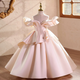 This girls' dress features a dreamy design and delicate details. The overall soft pink color tone is adorned with sparkling stripes and a fluffy feathered hemline, creating a fairy-like feel. The back is finished with a large bow in the same color, adding an air of elegance and cuteness. This gown is offered in a variety of color options to meet different style needs.