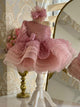 This one is soft, with delicate braids and sequin embellishments, giving it a fairy-tale charm. It adds a touch of contrast, and the large bow at the waist adds another highlight. The fluffy skirt gives the little girl a dreamy feeling.