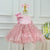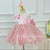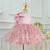 This girls' dress features a dreamy design and delicate details. The overall soft pink color tone is adorned with sparkling stripes and a fluffy feathered hemline, creating a fairy-like feel. The back is finished with a large bow in the same color, adding an air of elegance and cuteness. This gown is offered in a variety of color options to meet different style needs.