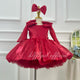 This girls' dress features a dreamy design and delicate details. The overall soft pink color tone is adorned with sparkling stripes and a fluffy feathered hemline, creating a fairy-like feel. The back is finished with a large bow in the same color, adding an air of elegance and cuteness. This gown is offered in a variety of color options to meet different style needs.
