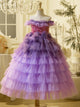 This girls' dress features a dreamy design and delicate details. The overall soft pink color tone is adorned with sparkling stripes and a fluffy feathered hemline, creating a fairy-like feel. The back is finished with a large bow in the same color, adding an air of elegance and cuteness. This gown is offered in a variety of color options to meet different style needs.