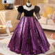 This girls' dress features a dreamy design and delicate details. The overall soft pink color tone is adorned with sparkling stripes and a fluffy feathered hemline, creating a fairy-like feel. The back is finished with a large bow in the same color, adding an air of elegance and cuteness. This gown is offered in a variety of color options to meet different style needs.